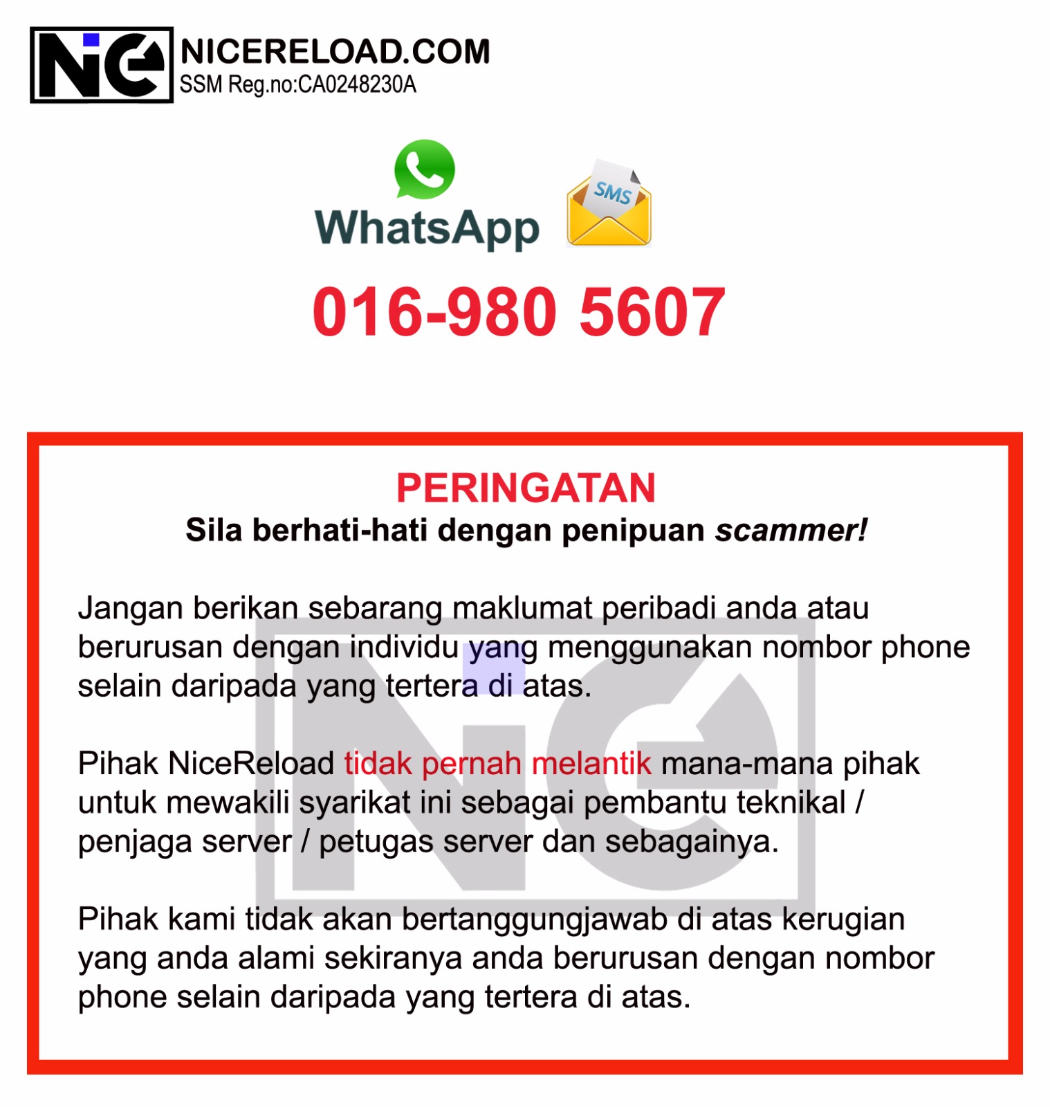 Sebarang Pertanyaan, Sila WhatsApp Kami